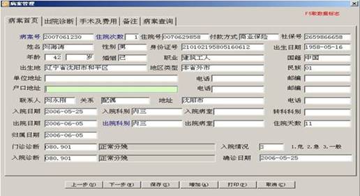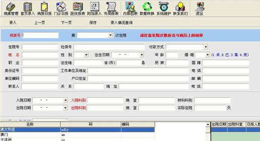 Are the means of the medical record entry, data entry daily hospitalization, outpatient medical technology daily workload data and daily data entry. Easy to use four input area, a significant reduction in use of staff time and labor of the operation. Taking into account the design of system applications cover a wide range of users varying levels of such factors into account to provide users with focus on very simple data entry and accelerated entry of the efficiency and reduce errors. While fully taking into account the number of users of ICD-10 code has not yet familiar with the case, shall provide users with ICD-9 coding and ICD-10 coding of automatic conversion.